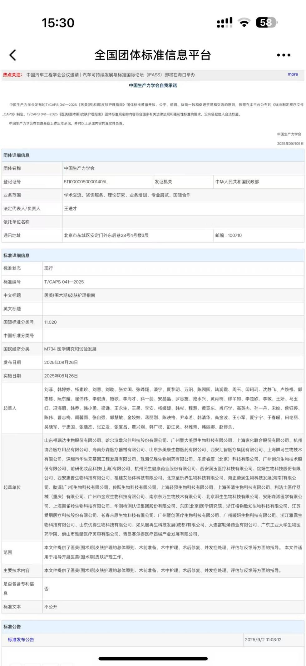 "மருத்துவ அழகு (பெரியபரேட்டிவ்) தோல் பராமரிப்பு வழிகாட்டுதல்களின்" மேம்பாட்டில் சைல்தார் மருத்துவம் பங்கேற்பது அதிகாரப்பூர்வமாக வெளியிடப்பட்ட குழு தரநிலைகள்